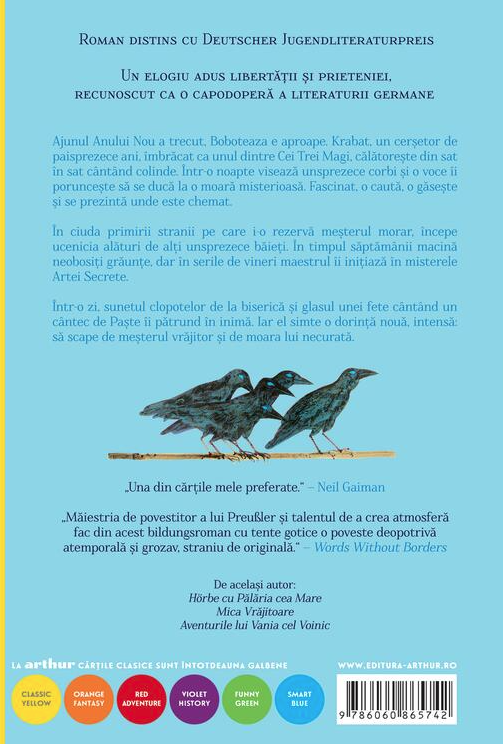 Ajunul Anului Nou a trecut, Boboteaza e aproape. Krabat, un cerșetor de paisprezece ani, îmbrăcat ca unul dintre Cei Trei Magi, călătorește din sat în sat cântând colinde. Într-o noapte visează unsprezece corbi și o voce îi poruncește să se ducă la o moară misterioasă. Fascinat, o caută, o găsește și se prezintă unde este chemat.