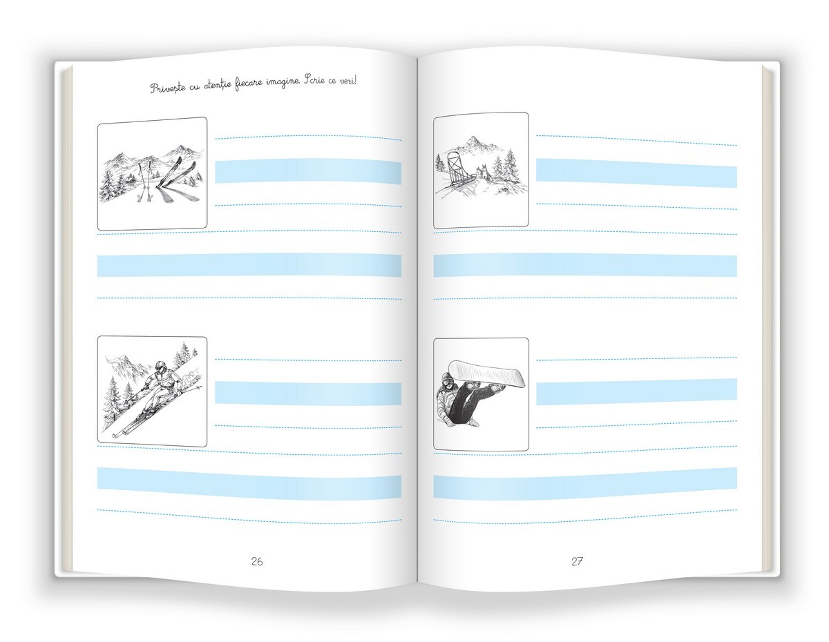 Caietul urmărește atât exersarea scrisului cu litere cursive, cât și îmbogățirea vocabularului. Liniatura este utilă, pentru a ajuta copilul să păstreze un scris ordonat și să respecte dimensiunile și proporțiile literelor.