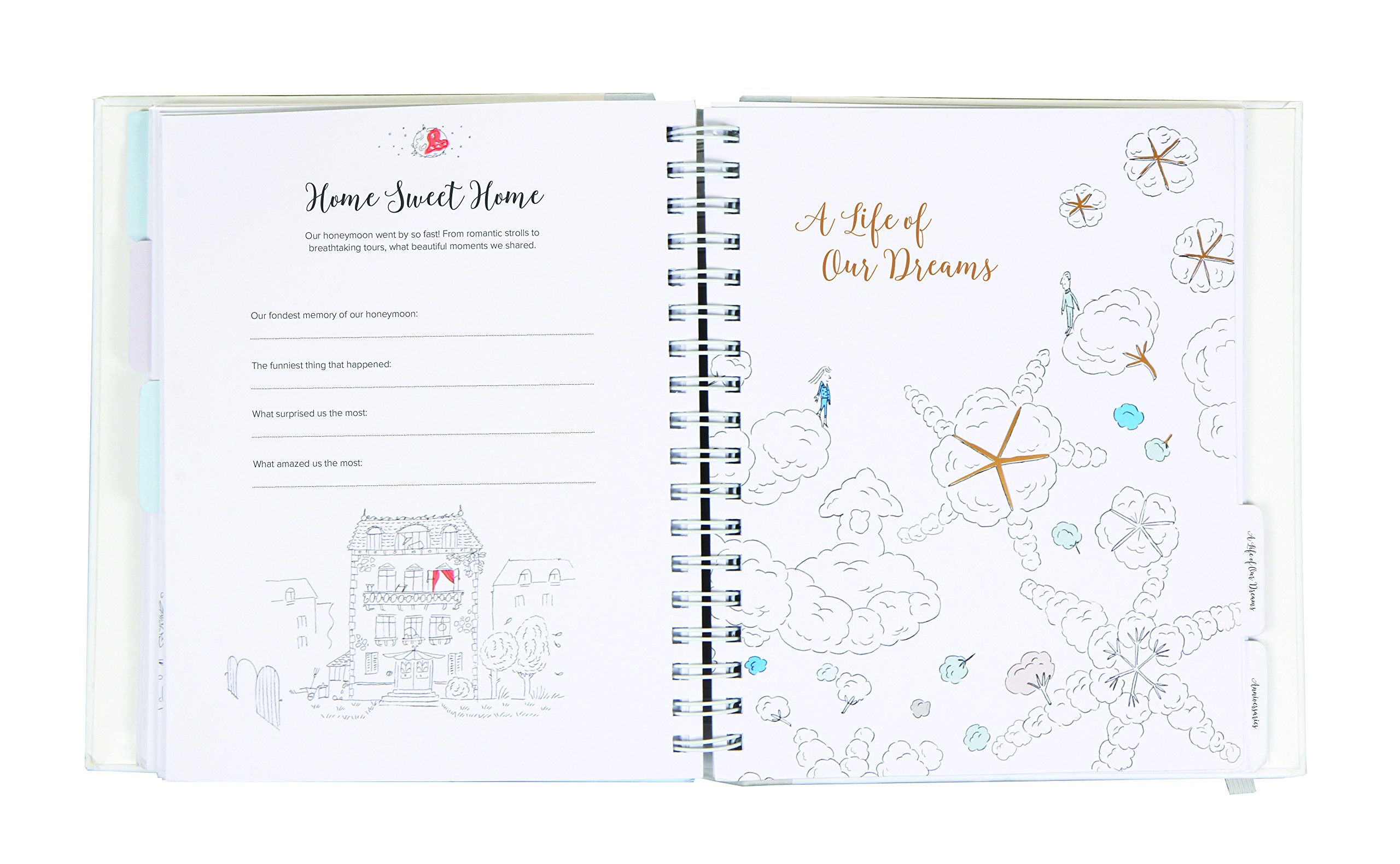 This charming memento offers endless imaginative ways to capturing everything to do with I do! Stash mementos in little envelopes, collect photos of family and friends, stow away notes and wishes for future anniversaries, and record memories both big and small. Decorated with foil and a handsome fabric spine, as well as whimsical illustrations throughout, this keepsake is the perfect way to commemorate a couple's treasured wedding memories.