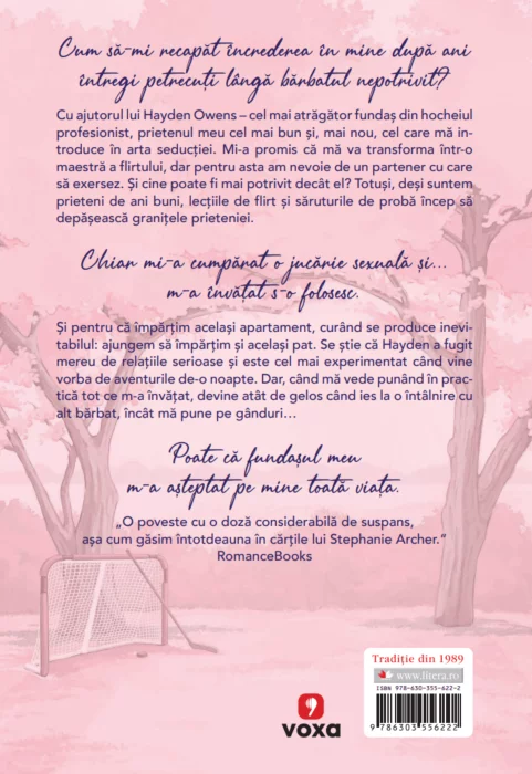 Cu ajutorul lui Hayden Owens – cel mai atrăgător fundaș din hocheiul profesionist, prietenul meu cel mai bun și, mai nou, cel care mă introduce în arta seducției. Mi-a promis că mă va transforma într-o maestră a flirtului, dar pentru asta am nevoie de un partener cu care să exersez. Și cine poate fi mai potrivit decât el? Totuși, deși suntem prieteni de ani buni, lecțiile de flirt și săruturile de probă încep să depășească granițele prieteniei. Chiar mi-a cumpărat o jucărie sexuală și... m-a învățat s-o folosesc.