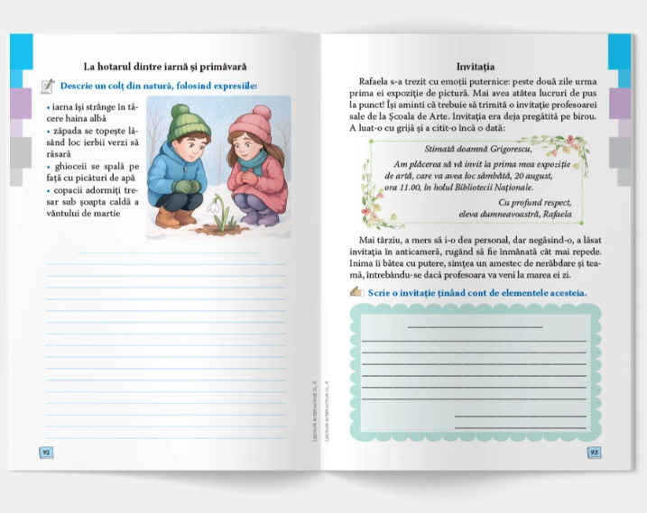 Lecturi interactive cu fișe lucrative – clasa a IV-a este un auxiliar educațional modern, conceput pentru a dezvolta competențele de lectură, înțelegere și analiză a textului la elevii de clasa a IV-a. Cartea cuprinde texte atent selectate, adaptate vârstei, însoțite de exerciții variate și fișe lucrative care stimulează gândirea critică, exprimarea personală și capacitatea de a formula răspunsuri argumentate. Structura clară, ilustrațiile atractive și sarcinile interactive îi ajută pe copii să învețe cu plăcere, atât individual, cât și la clasă, iar profesorii și părinții beneficiază de un instrument eficient pentru consolidarea cunoștințelor și evaluarea progresului. Auxiliarul sprijină lectura conștientă, dezvoltarea vocabularului și formarea deprinderilor esențiale pentru studiul limbii române.