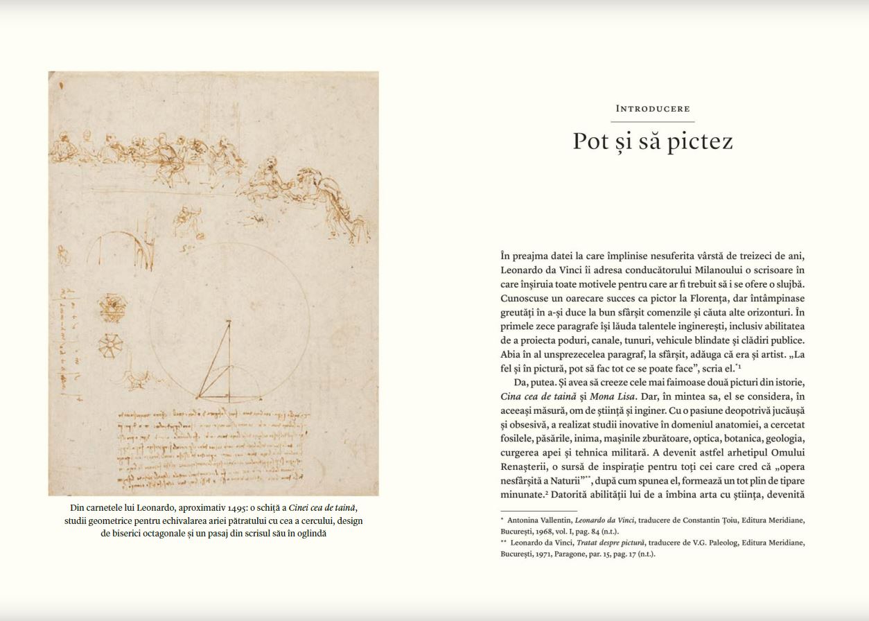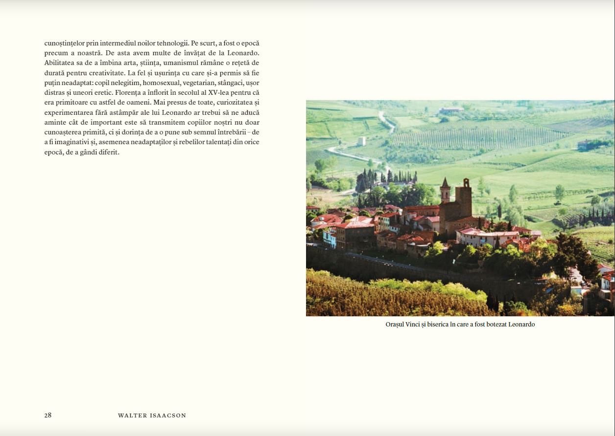 A citi această biografie magnifică a lui Leonardo da Vinci înseamnă a face o călătorie prin viața și opera uneia dintre cele mai extraordinare ființe umane din toate timpurile, în compania celui mai șarmant, informat și intuitiv ghid imaginabil. Walter Isaacson este deopotrivă un adevărat savant și un scriitor fascinant. Și ce bogăție de învățăminte în aceste pagini. — David McCullough