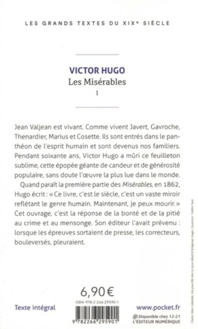 Jean Valjean est vivant. Comme vivent Javert, Gavroche, Thenardier, Marius et Cosette. Ils sont entrés dans le panthéon de l'esprit humain et sont devenus nos familiers. Pendant soixante ans, Victor Hugo a mûri ce feuilleton sublime, cette épopée géante de candeur et de générosité populaire, sans doute l'oeuvre la plus lue dans le monde. Quand parait la première partie des Misérables, en 1862, Hugo écrit : "Ce livre, c'est le siècle, c'est un vaste miroir reflétant le genre humain.