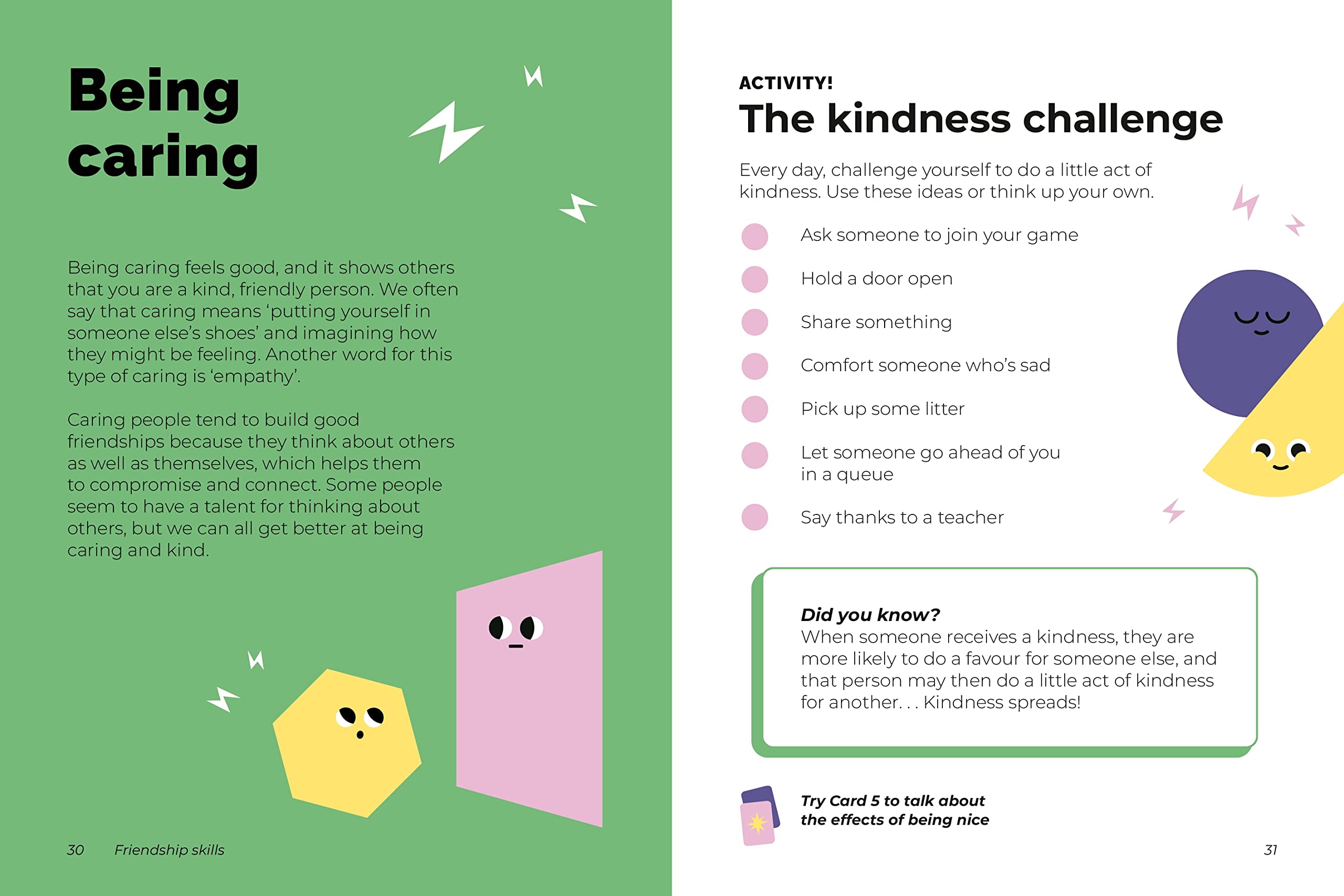 Whether it's workshopping interpersonal skills that can help build relationships, or providing a child with the tools to cope in situations where he or she feels left out, the activities and exercises inside use prompts and images to discuss important issues with a focus on mental wellbeing and understanding. This set allows adults to engage with children on an emotional level, helping them to develop important social connections, as well as growing their compassion, communication and effective listening skills.