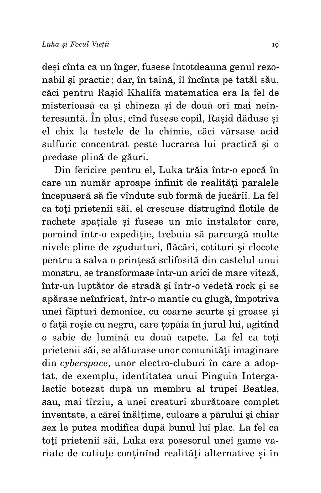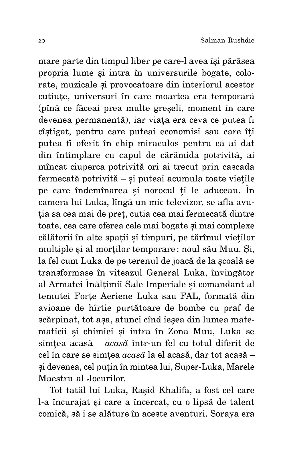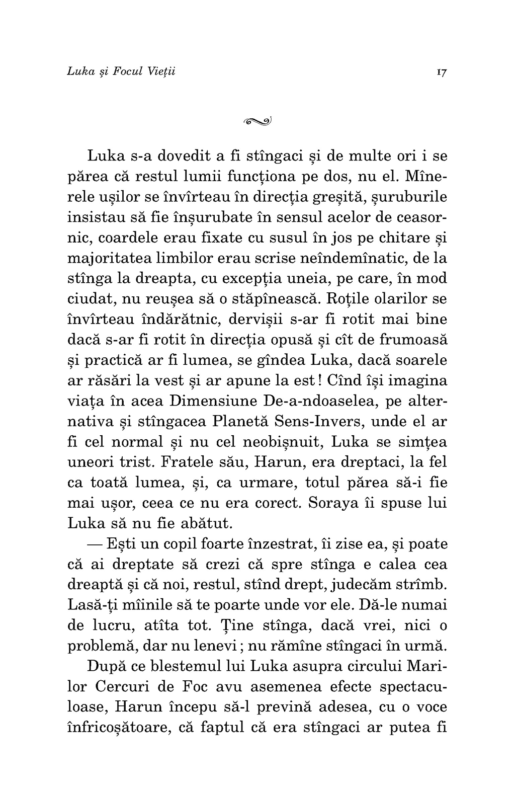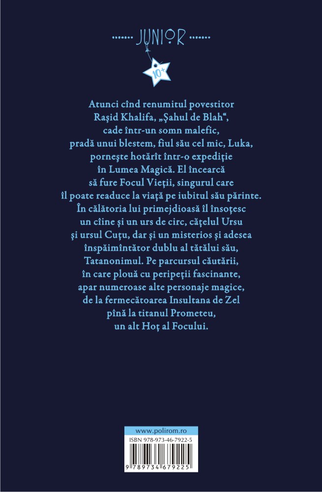 Atunci cînd renumitul povestitor Rașid Khalifa, „Șahul de Blah”, cade într-un somn malefic, pradă unui blestem, fiul său cel mic, Luka, porneşte hotărît într-o expediţie în Lumea Magică. El încearcă să fure Focul Vieţii, singurul care îl poate readuce la viaţă pe iubitul său părinte. În călătoria lui primejdioasă îl însoţesc un cîine și un urs de circ, căţelul Ursu și ursul Cuţu, dar și un misterios și adesea înspăimîntător dublu al tătălui său, Tatanonimul. Pe parcursul căutării, în care plouă cu peripeţii fascinante, apar numeroase alte personaje magice, de la fermecătoarea Insultana de Zel pînă la Titanul Prometeu, un alt Hoţ al Focului.