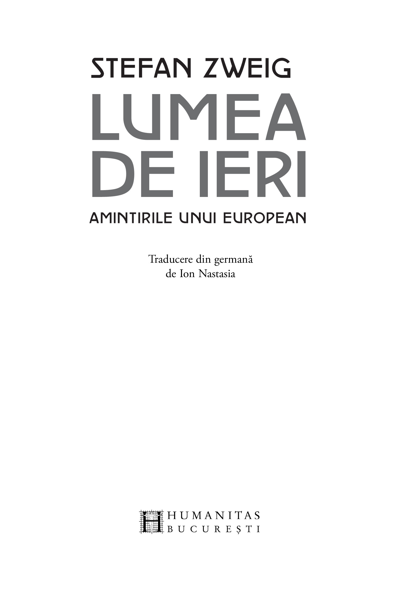 „Lumea de ieri“ este Viena și Europa de dinaintea Primului Război Mondial: o lume sigură, stabilă și armonioasă, unde libertatea de spirit domnea neștirbită. Lumea în care s-a născut și a început să scrie, cunoscând celebritatea, Stefan Zweig, în care el a călătorit, s-a îndrăgostit de cultura franceză, a legat mari prietenii intelectuale.