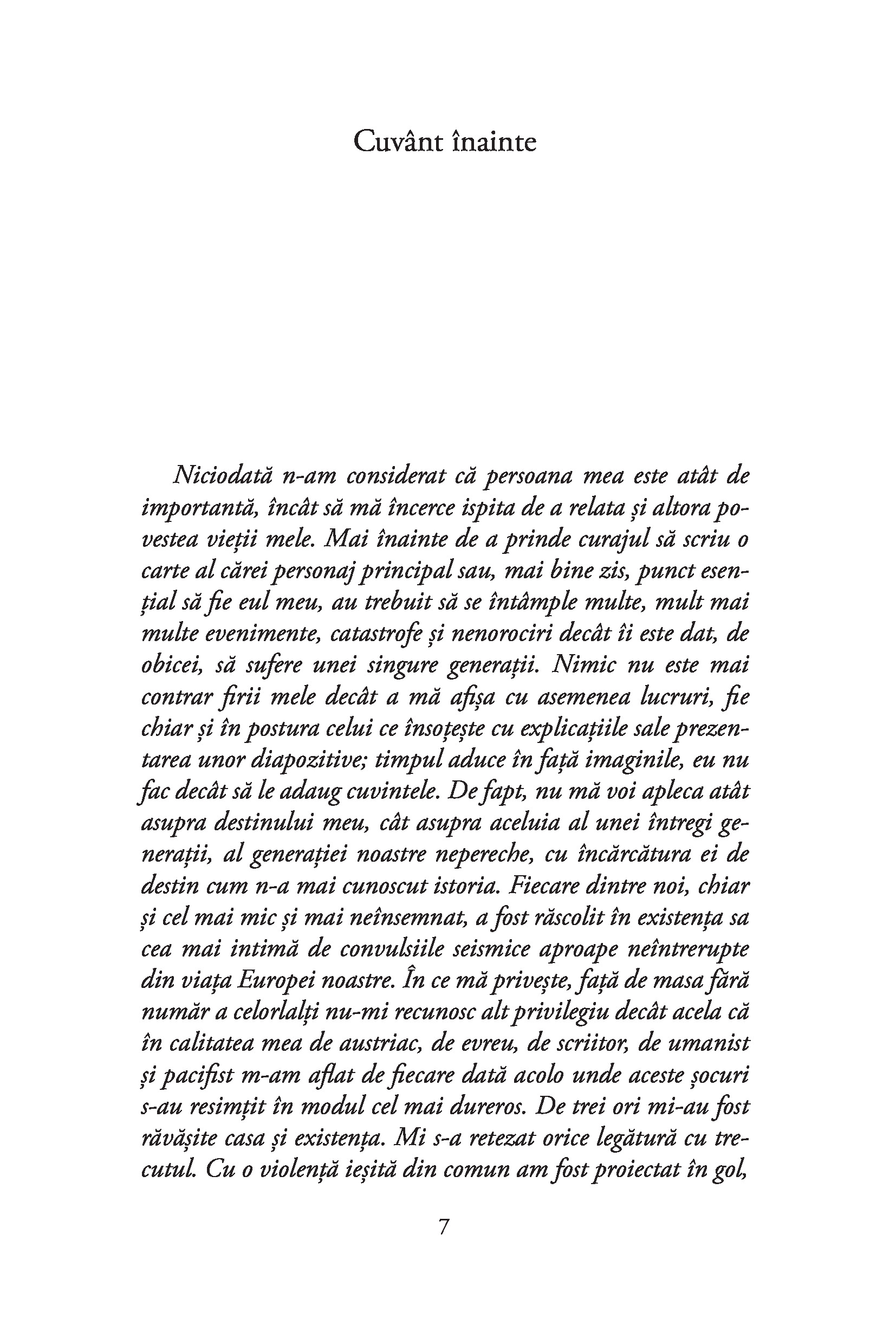 Presărată cu întâmplări pitorești și povești dramatice, populată de personaje celebre ale timpului – Hugo von Hofmannsthal, Rilke, Emile Verhaeren, Romain Rolland, Rodin, Richard Strauss, Tolstoi, Gorki, Benedetto Croce, Bernard Shaw, H.G. Wells, Freud etc. –, plină de farmec și culoare, cartea lui Zweig exprimă totodată sensul unei vieți, semnificația unei misiuni de scriitor, a unui ideal intelectual.