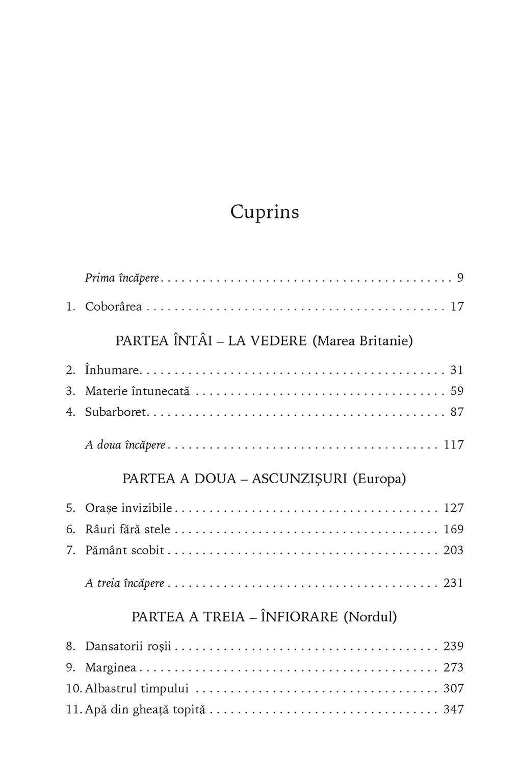 Robert Macfarlane ne propune o fascinantă explorare a relației noastre cu întunericul, cu ceea ce se află în adîncul pămîntului și al minții noastre. În această călătorie în „timpul profund”, care începe cu nașterea universului și ajunge pînă într-un viitor post-uman, admirăm arta preistorică din peșterile marine norvegiene și adîncurile albastre ale calotei glaciare din Groenlanda, vizităm tumulii din Epoca Bronzului și labirintul catacombelor pariziene, examinăm rețelele fungice subterane prin care copacii comunică între ei și „ascunzătoarea” în care vor sta deșeurile nucleare în următorii 100.000 de ani. Pășind pe urmele umbrelor, vom afla poveștile multor exploratori, artiști, speologi, scafandri, visători și criminali care au coborît în lumea de sub noi în căutarea „beznei cumplite din adîncul pămîntului”, cum spunea Cormac McCarthy.