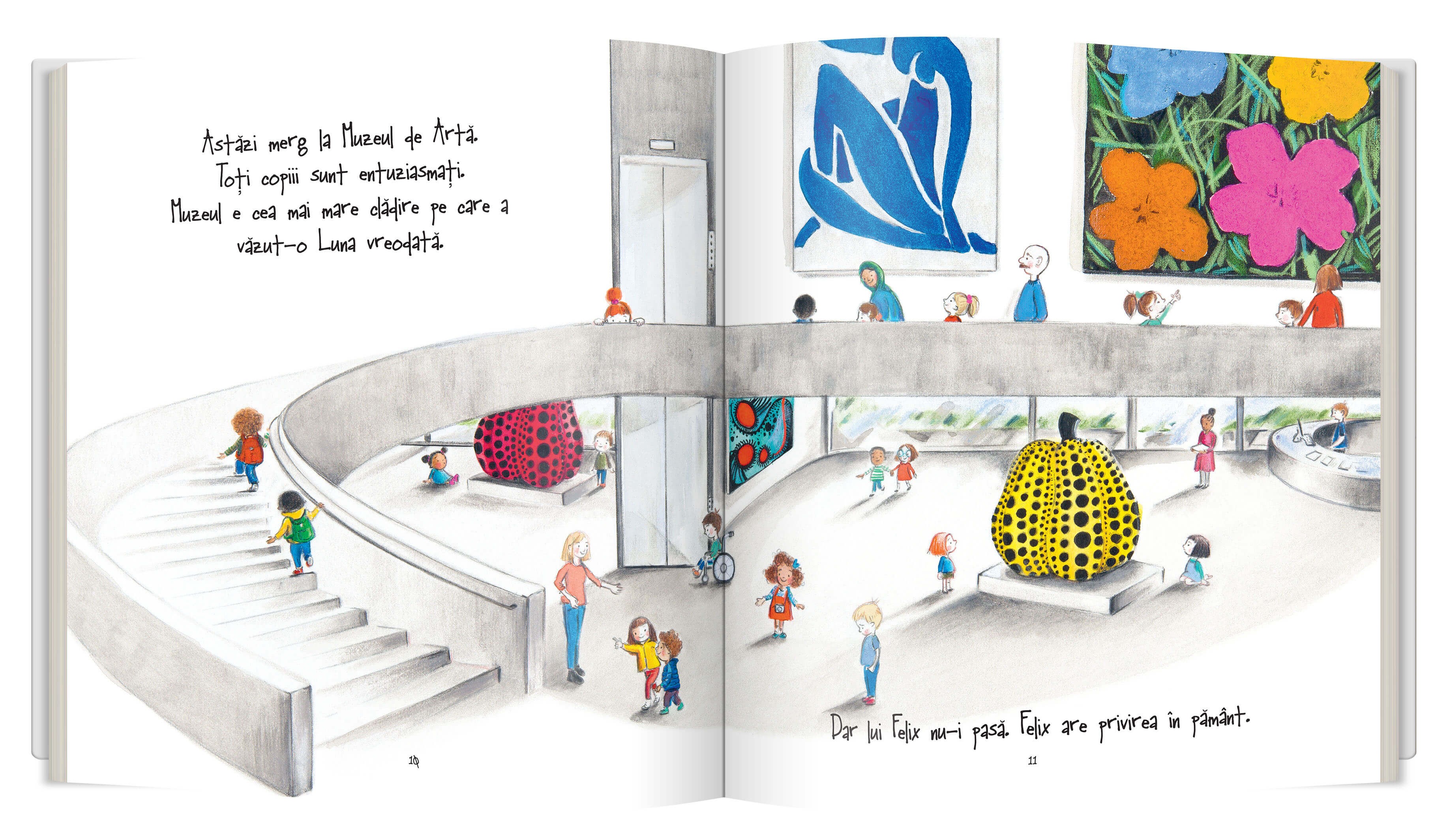 Luna iubește arta este o poveste minunată despre artă și puterea prieteniei. Luna merge în excursie la muzeu și, pe lângă opere de Van Gogh, Picasso, Jackson Pollock, va descoperi că arta este un limbaj universal, care îi poate ajuta pe oameni să se apropie unii de ceilalți.