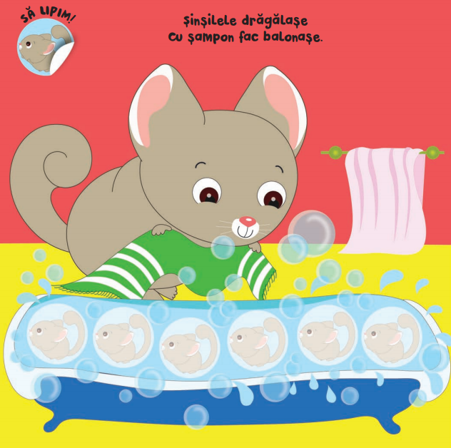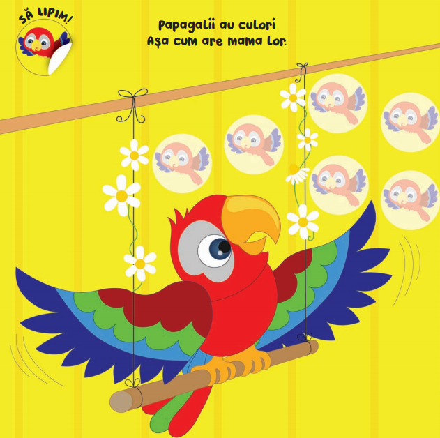 Ilustrații drăgălașe cu puiuți de animale, texte nostime cu rimă și 80 de abțibliduri cu margini rotunjite ca să se lipească ușor.