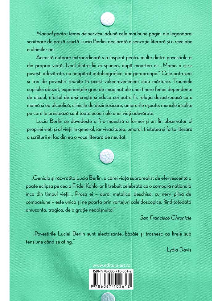 „Geniala și răzvrătita Lucia Berlin, a cărei viață suprarealist de efervescentă o poate eclipsa pe cea a Fridei Kahlo, ar fi trebuit celebrată ca o comoară națională încă din timpul vieții... Proza ei – dură, metalică, deschisă, cu nerv, plină de compasiune – este unică și ne poartă prin vârtejuri caleidoscopice, fiind totodată amuzantă, tragică, de o grație neobișnuită.“ San Francisco Chronicle