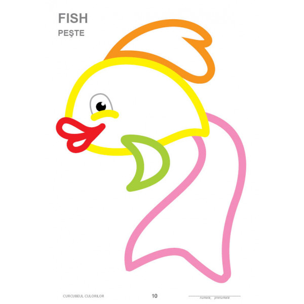 Mapa conține 24 de fișe cu desene ce sunt de mari dimensiuni, cu forme clare și linii groase. Liniile de contur indica în ce nuanță poate fi colorat fiecare element.