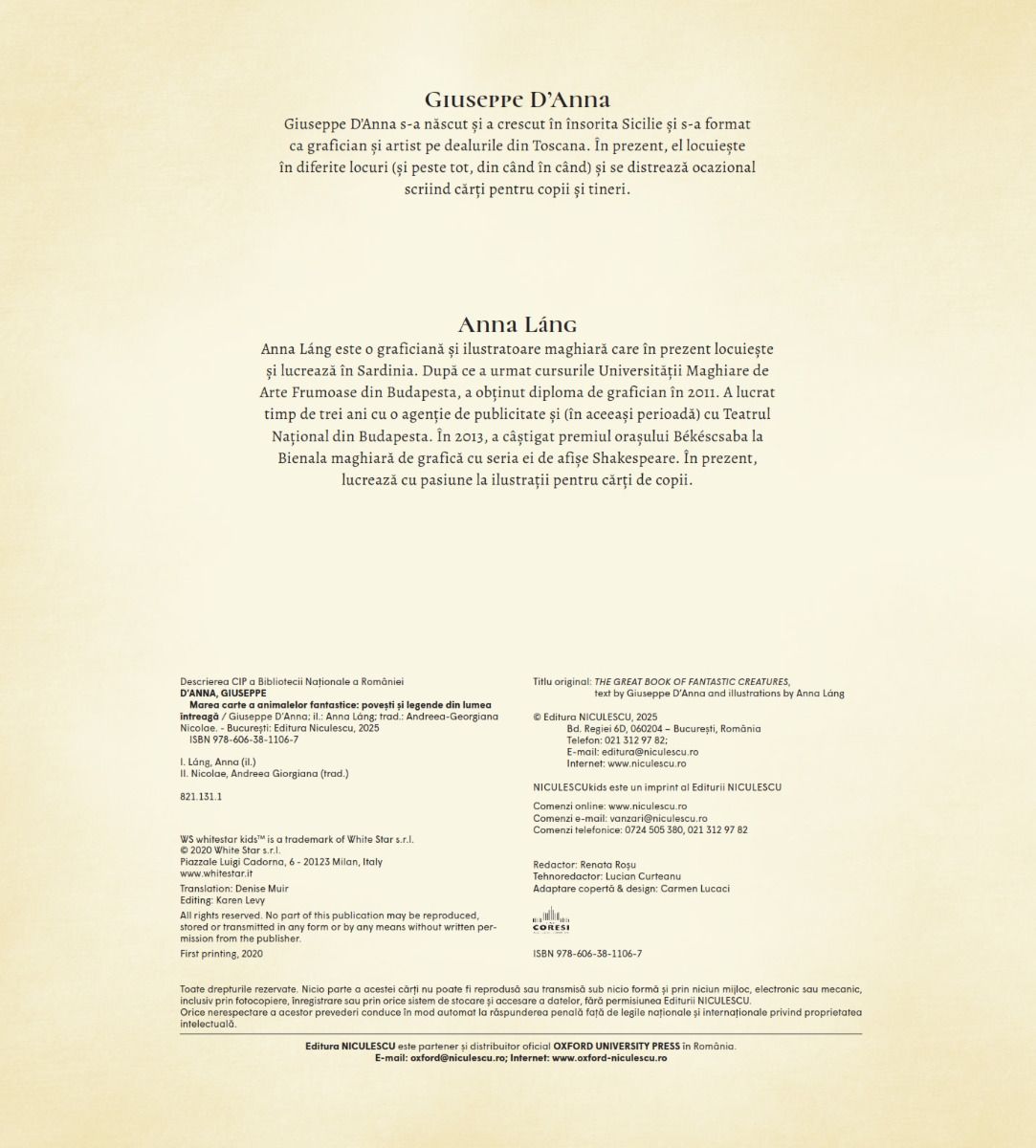 Cartea pe care o ții în mâini este plină de informații utile ce te vor ajuta să recunoști mai ușor fiecare specie de animale fantastice. De asemenea, vei afla totul despre locurile în care acestea stau ascunse de ochii musafirilor nepoftiți, despre obiceiurile lor, despre ce le place să mănânce și cum să le îngrijești.