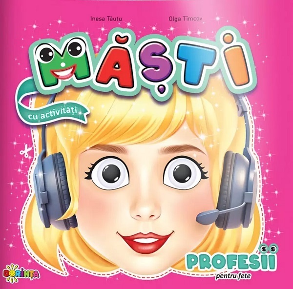 Masti cu activitati: Profesii pentru fete, va propune diverse activitati de tipul uneste puncte, coloreaza, decupeaza, alcatuieste dialog, traseaza conturul alaturi de masti cu diverse teme, precum educatoare, vanzatoare, insotitoare de bord, doctor, pictor si multe altele.