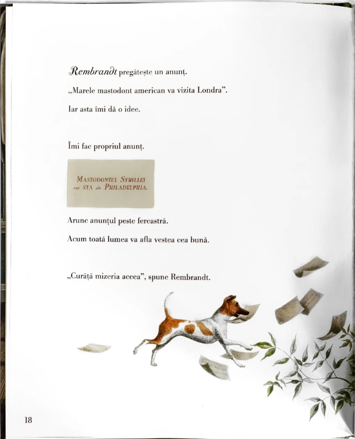 Sybilla este obișnuită să trăiască printre exponatele faunei sălbatice care umplu muzeul de istorie naturală înființat chiar în casa lor de Rembrandt și de tatăl lor, Charles Peale. Este de înțeles furia Sybillei când a auzit de știrea că «magnificul!» mastodont de sub care își ține petrecerea ceaiului de păpuși va pleca. Rebeliunea ei se topește, totuși, când Rembrandt se înclină de fapt la dorințele ei. «Chiar dacă este șef, el este fratele meu».