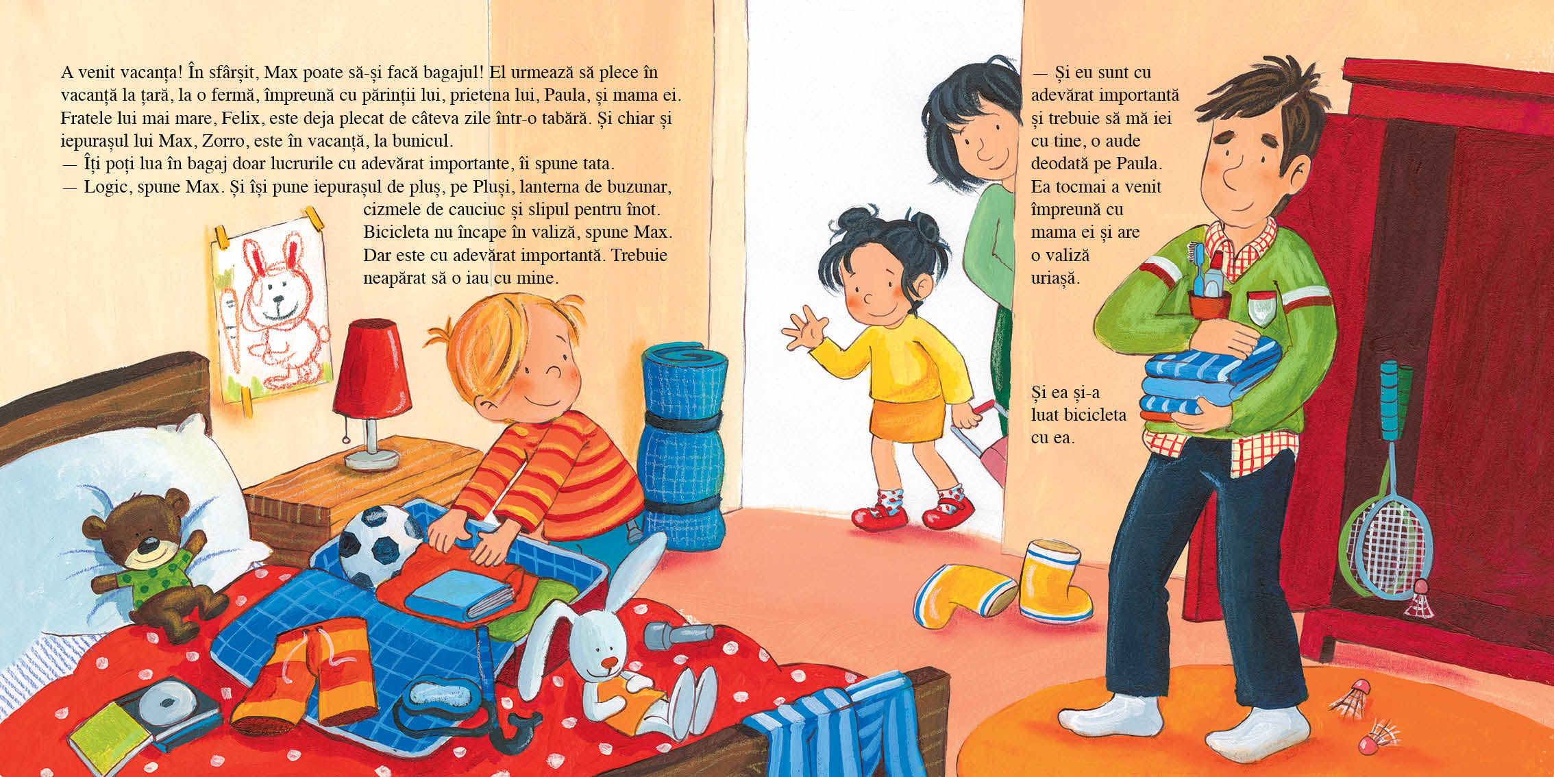 Max merge în vacanță la țară, la o fermă, împreună cu părinții lui, prietena lui, Paula, și mama ei. Bineînțeles, a împachetat doar lucruri importante pentru călătorie: iepurele lui de pluș, cizmele de cauciuc, aripioarele pentru înot și o lanternă! În scurt timp, mașina este complet încărcată și sunt gata de călătorie și de noile aventuri. Îi așteaptă plimbările cu barca și cu bicicleta, nopțile petrecute în cort și multe alte lucruri pe care vă lăsăm să le descoperiți singuri.