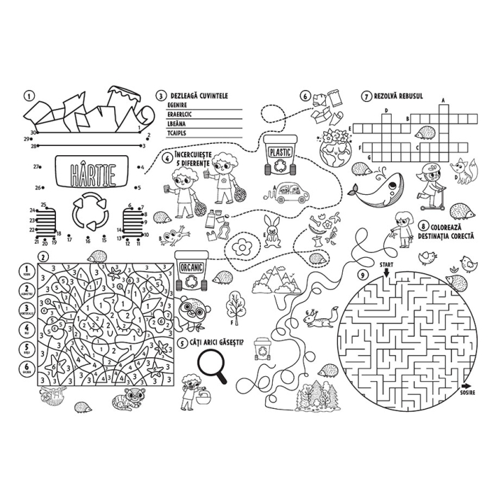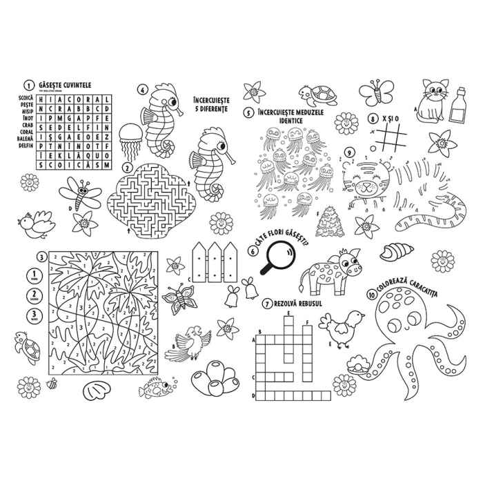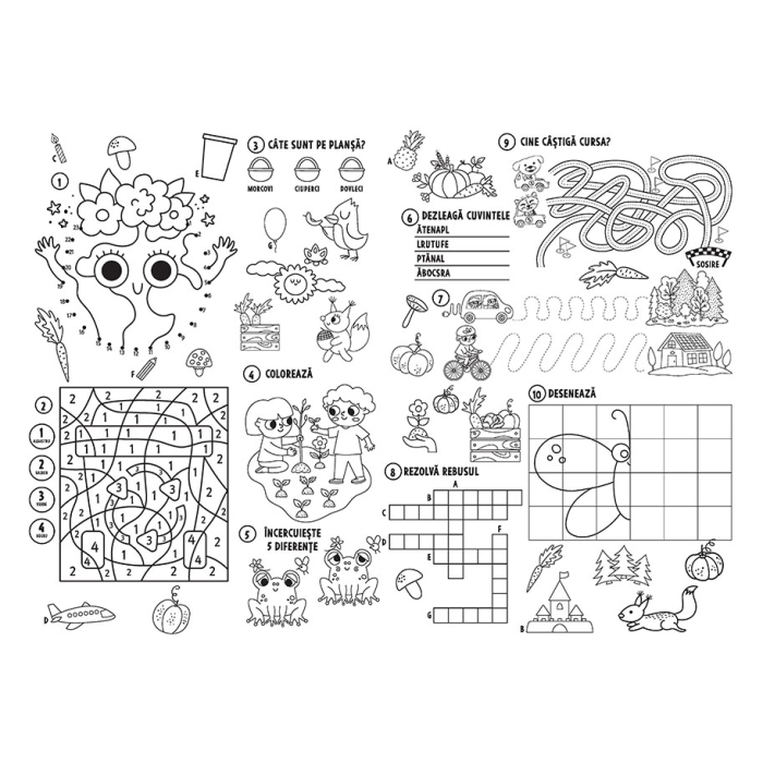 Mega-activitățile conțin câte 4 postere uriașe cu jocuri și activități, numai bune de rezolvat, colorat și expus pe perete!