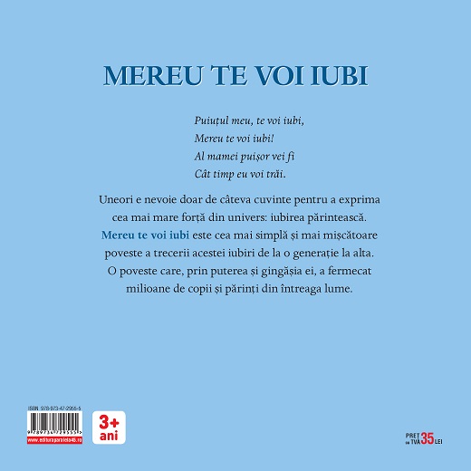 Mereu te voi iubi este cea mai simplă și mai mișcătoare poveste a trecerii acestei iubiri de la o generație la alta. O poveste care, prin puterea și gingășia ei, a fermecat milioane de copii și părinți din întreaga lume.