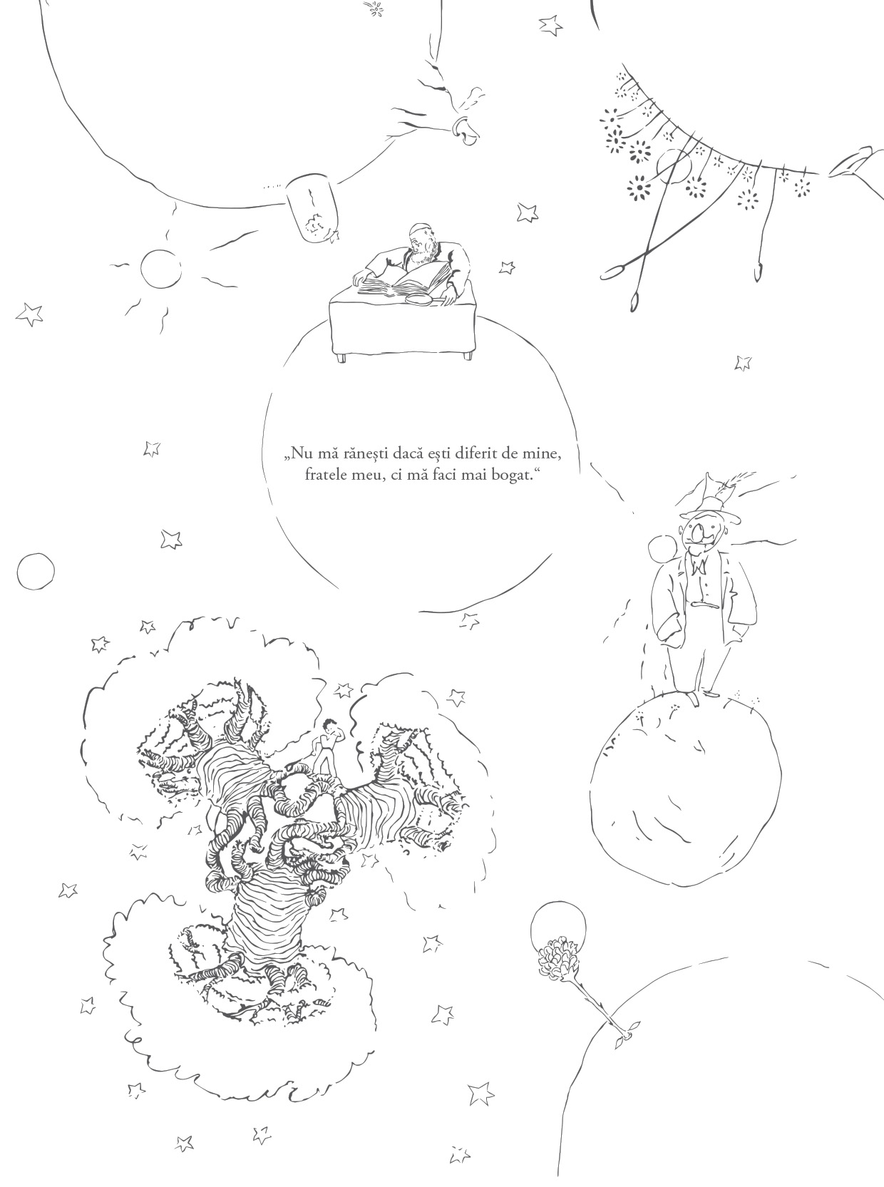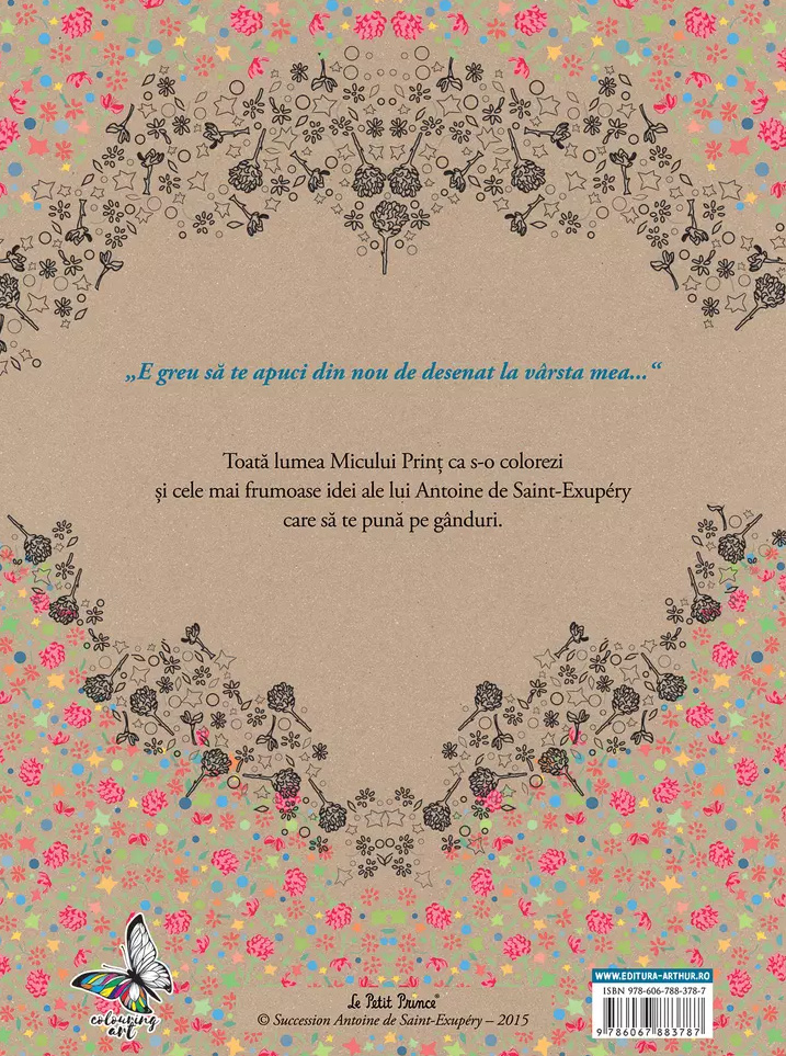 Toată lumea Micului Prinț ca s-o colorezi și cele mai frumoase idei ale lui Antoine de Sainte-Exupéry care să te pună pe gânduri.