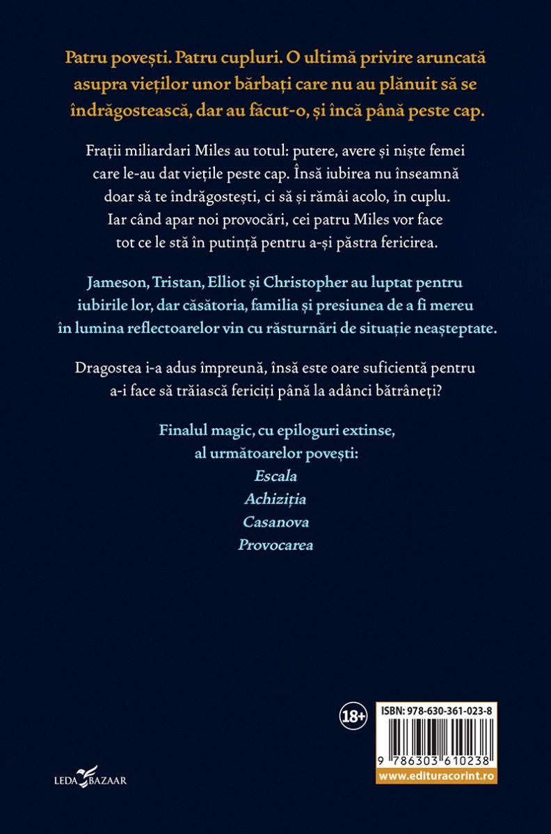 Frații miliardari Miles au totul: putere, avere și niște femei care le-au dat viețile peste cap. Însă iubirea nu înseamnă doar să te îndrăgostești, ci să rămâi acolo, în cuplu. Iar când apar noi provocări, cei patru Miles vor face tot ce le stă în putință pentru a-și păstra fericirea.