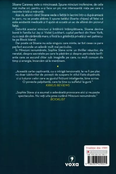 În Minciuni nenumărate, Sophie Stava scrie un thriller năucitor, de neratat, despre secretele pe care le păstrăm și despre pericolele terifiante care se ascund chiar sub imaginile pe care, cu mult consum de timp și energie, încercăm să le menținem.