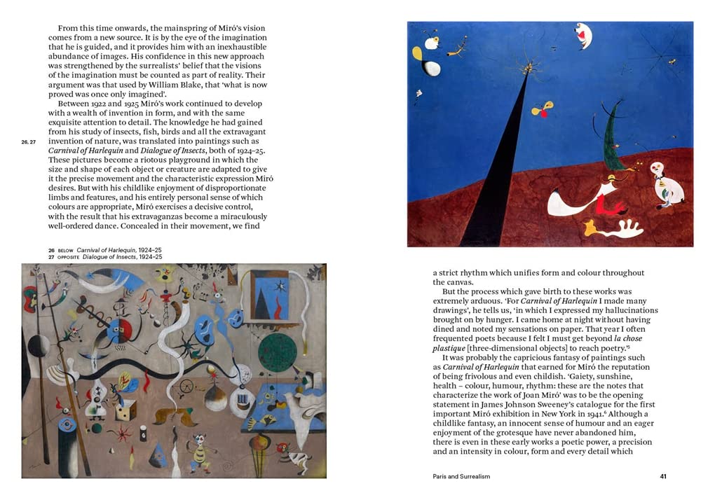 Among the great 20th-century masters, the surrealist painter Joan Miro stands out for the atmosphere of wit and spontaneity that pervades his work. Miro's art went through many phases, and its major features - his signs and symbols, his series of anguished peintures sauvages in the 1930s, his lyrical, poetic gouaches, his monumental sculptures and ceramics, his unprecedented use of poetic titles, and his attachment to nature and to the night - are discussed here by Roland Penrose, a friend of the artist for almost five decades. A brief epilogue by Eduardo de Benito, London correspondent of the Spanish art periodical Lapiz, illustrates the developments of Miro's last years. This new revised edition, now illustrated in colour throughout, includes a foreword by Antony Penrose, outlining the relationship between his father and the artist, as well as updates to the Bibliography.