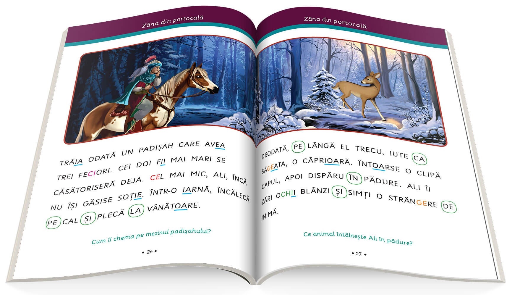 Din a doua poveste lipsesc pictogramele, dar majusculele și evidențierile au fost păstrate. În josul paginii sunt întrebări legate de text