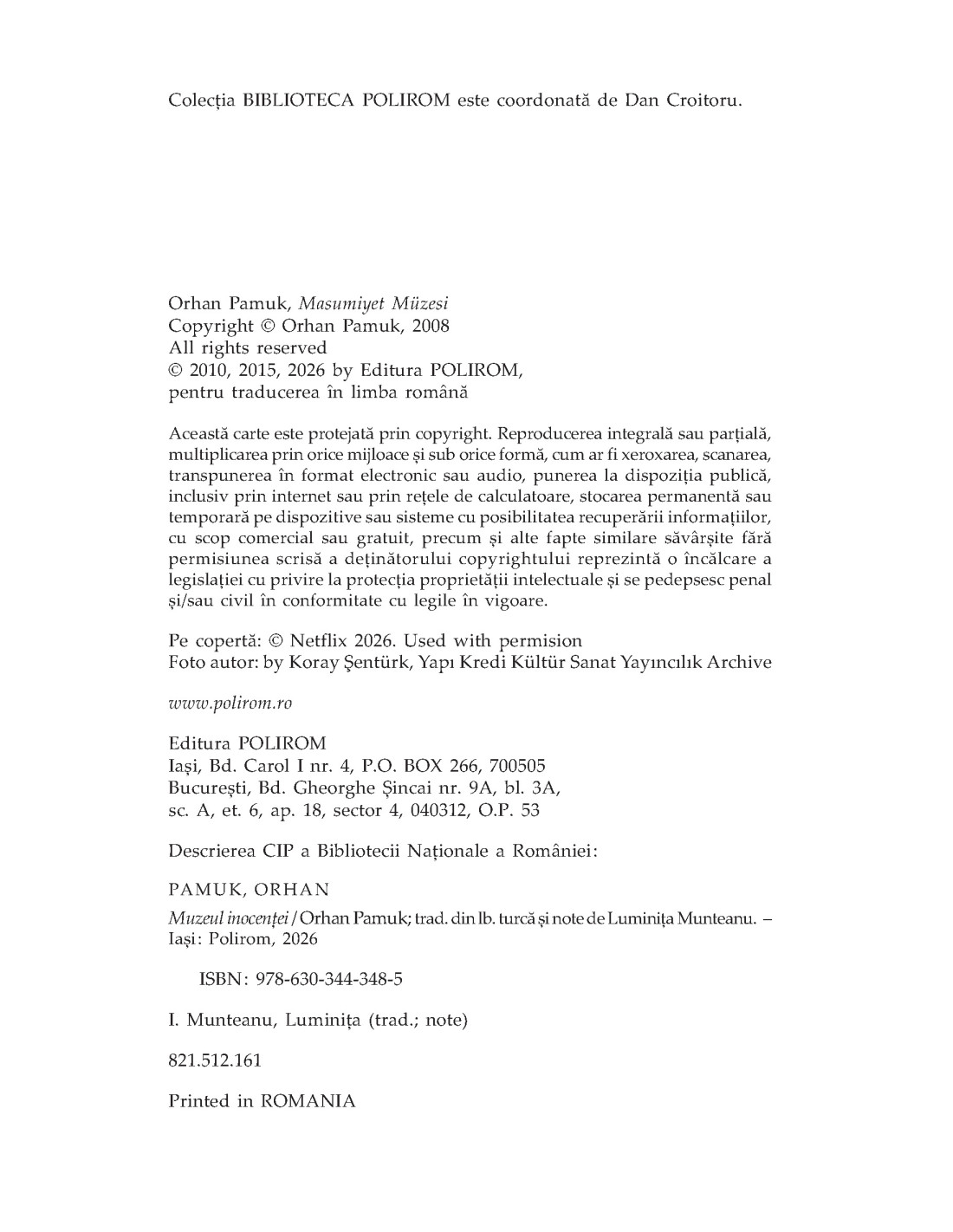 „Cea mai mare virtute a fanteziei unui scriitor este aceea de a uita lumea precum copiii, de a găsi în ea plăcerea fără opreliști, de a se juca cu regulile ei, dar în același timp de a-și lăsa cititorii să se piardă în ițele povestirii.” (Orhan Pamuk)