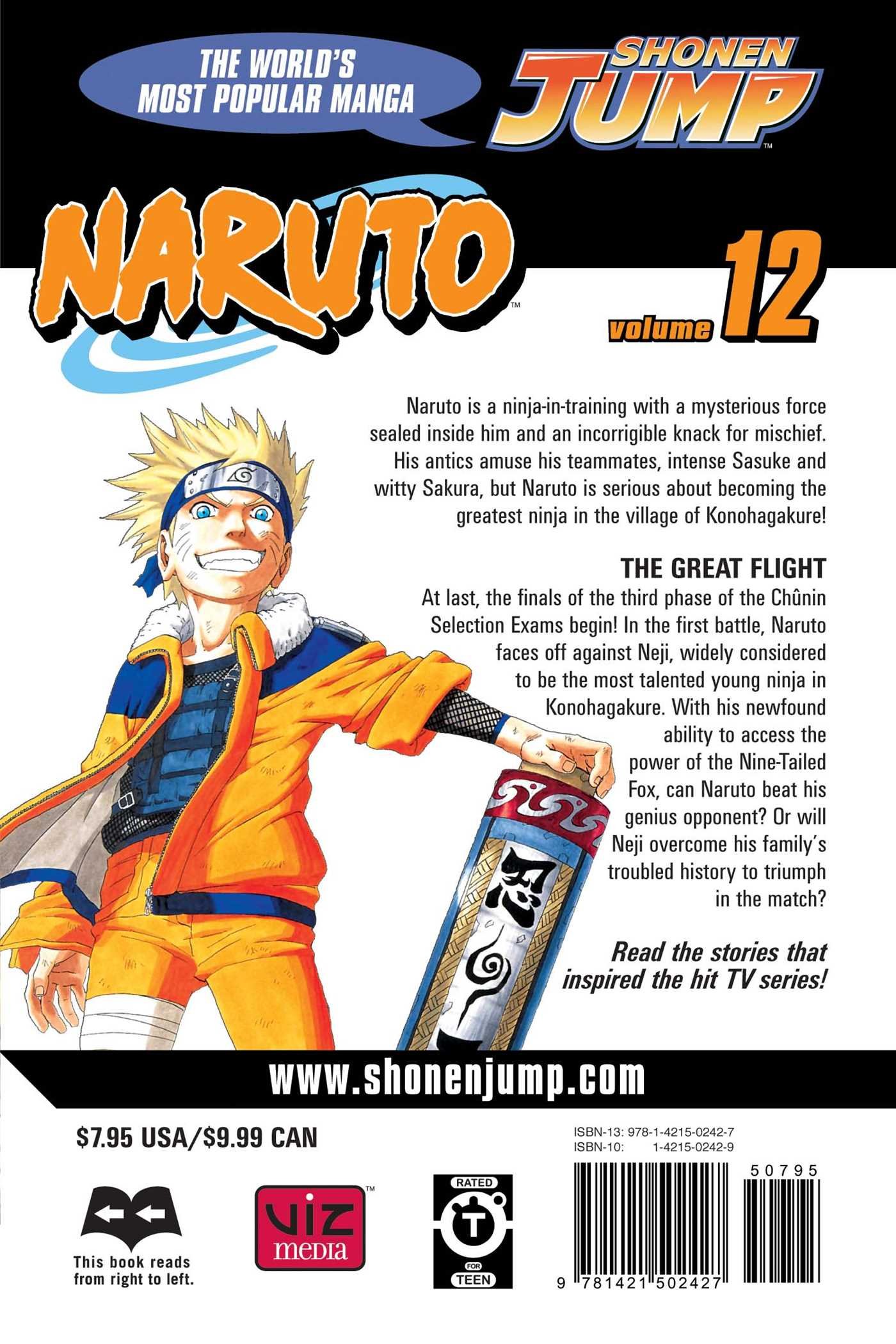 At last, the finals of the third phase of the Chûnin Selection Exams begin! In the first battle, Naruto faces off against Neji, widely considered to be the most talented young ninja in Konohagakure. With his newfound ability to access the power of the Nine-Tailed Fox, can Naruto beat his genius opponent? Or will Neji overcome his family's troubled history to triumph in the match?