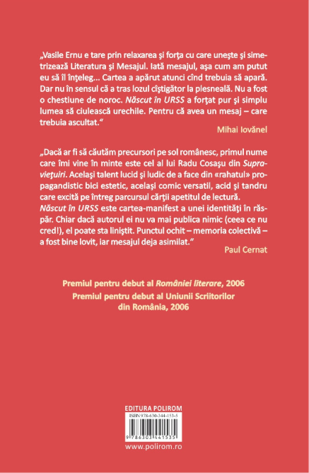 Născut în URSS este cartea-manifest a unei identităţi în răspăr. Chiar dacă autorul ei nu va mai publica nimic (ceea ce nu cred!), el poate sta liniştit. Punctul ochit – memoria colectivă – a fost bine lovit, iar mesajul deja asimilat.” (Paul Cernat)