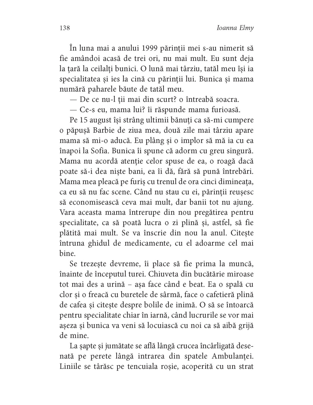 Romanul descrie o călătorie: din trecutul generaţiilor persecutate de regimul instaurat după 1944 până în perioada migraţiei de după căderea Cortinei de Fier. Bătrâni şi tineri, vremea lor şi prezentul nostru, generaţii de sacrificiu şi emigranţi, părinţi care îşi doresc pentru copiii lor lucrurile de care ei n-au avut parte, tonuri de cenuşiu şi visul american viu colorat.