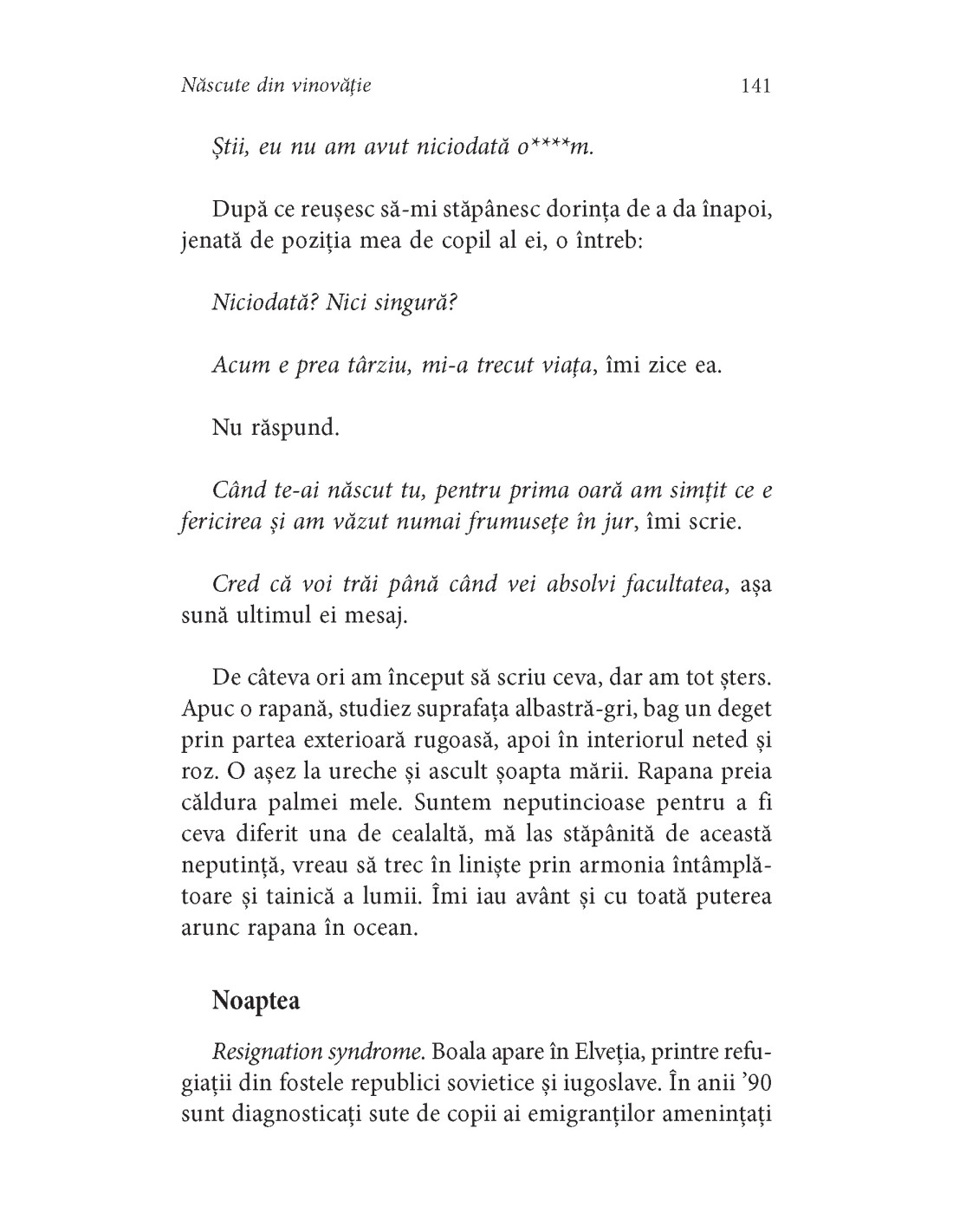 Născute din vinovăţie abordează istoria contemporană a Europei de Est – dictaturi totalitare, tranziţia spre democraţie, migraţia în Occident – prin intermediul poveştilor a trei femei bântuite de violenţă, dependenţă şi de neputinţa de-a găsi un loc pe care să-l numească „acasă”.