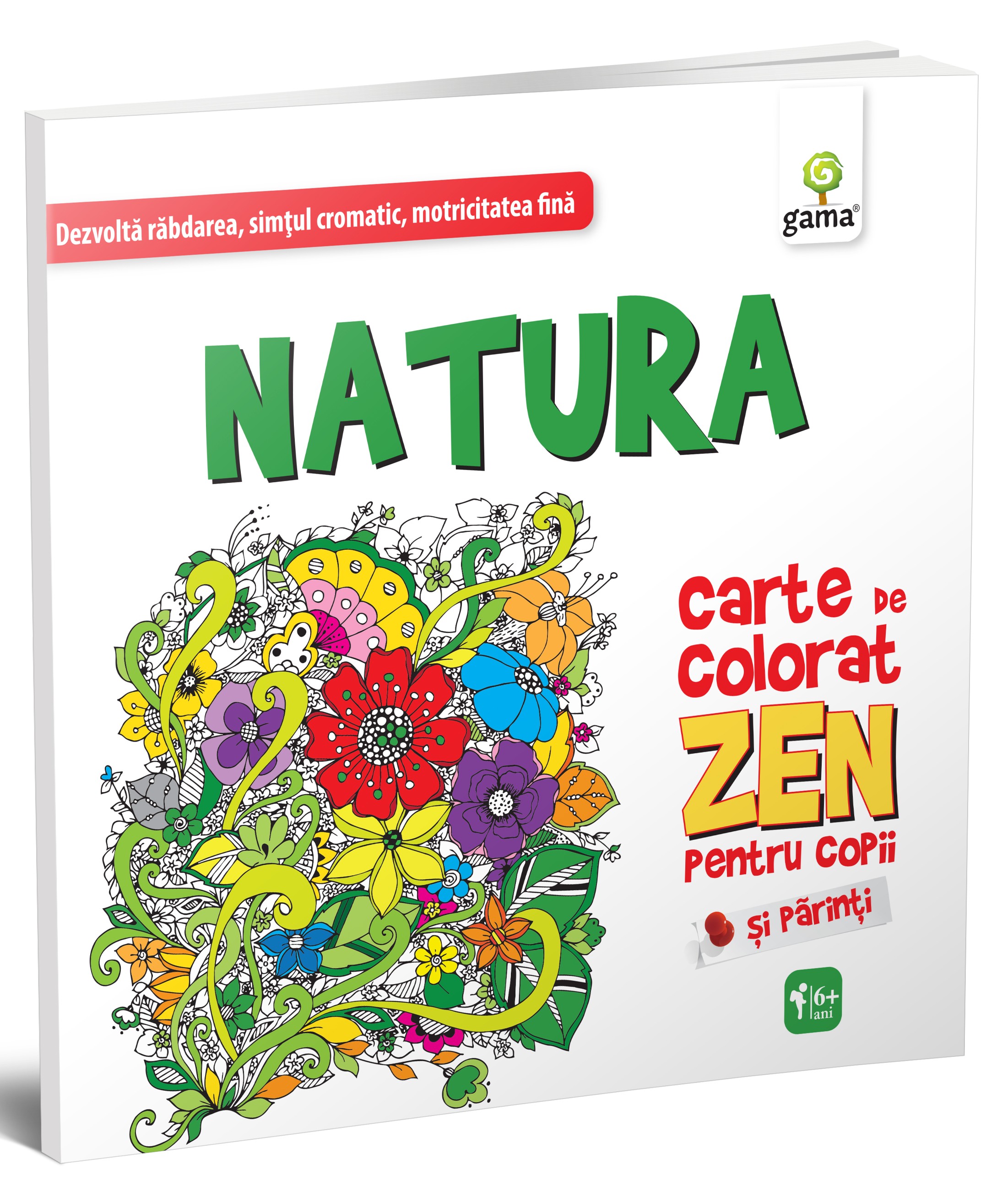 Natura. Carte de colorat ZEN pentru copii foloseşte modelele inspirate din natură şi simetria liniilor pentru a provoca imaginaţia copiilor şi a le stimula creativitatea şi simţul cromatic. Cărţile de colorat ZEN pentru copii se diferenţiază de cele obişnuite prin simetriile liinilor şi bogăţia detaliilor. Beneficiile lor sunt multiple: