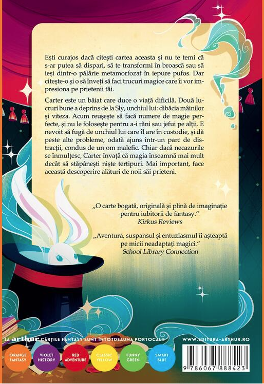 Ești curajos dacă citești cartea aceasta și nu te temi că s-ar putea să dispari, să te transformi în broască sau să ieși dintr-o pălărie metamorfozat în iepure pufos. Dar citește-o și o să înveți să faci trucuri magice care îi vor impresiona pe prietenii tăi.