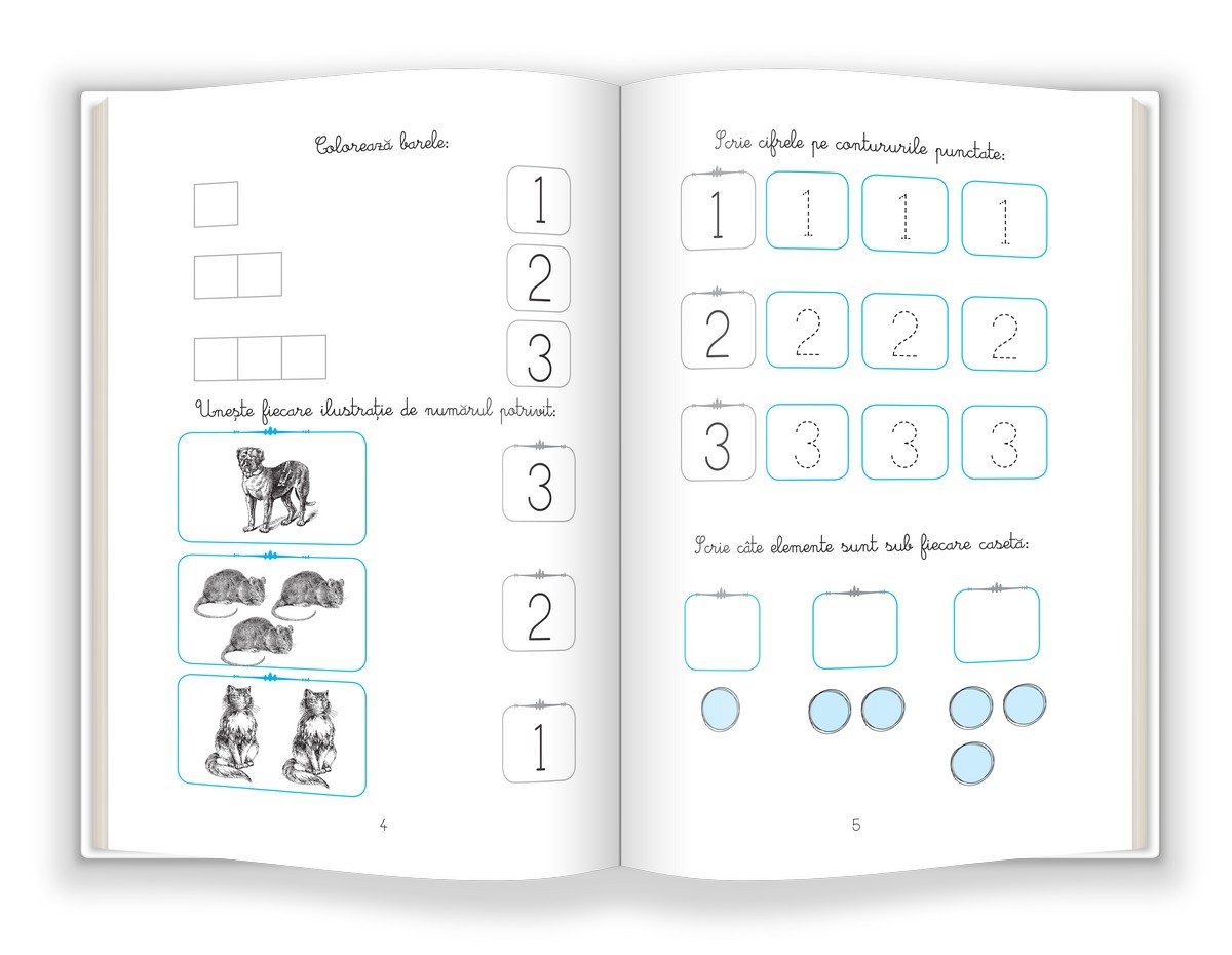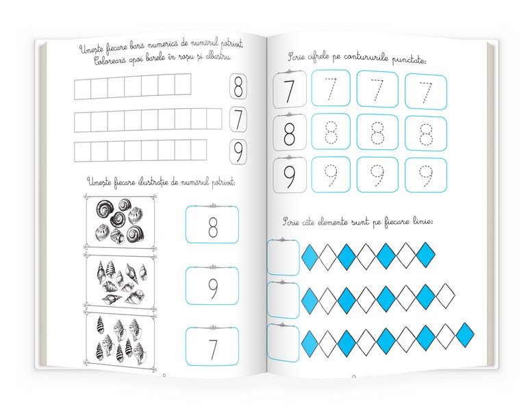 Cu ajutorul acestei cărți, copilul va învăța numerele, iar exersând zi de zi, va reuși să își îmbunătățească capacitatea de concentrare, atenția și logica. Paginile sunt însoțite de exemple, fie alb-negru, fie color, care îi vor stimula copilului dorința de a învăța. Caietul cu activități este potrivit mai ales pentru copiii care abia învață numerele și care sunt ușor distrași de la asimilarea informațiilor.