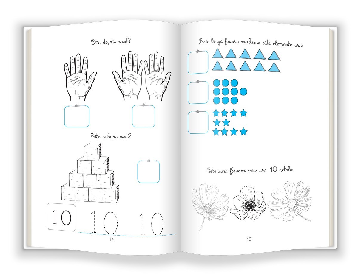 Caietele din colecția „Activități matematice Montessori” vin în completarea kitului Descopăr cifrele Montessori, dar, deși folosesc sisteme de reprezentare specifice metodei montessoriene, pot fi folosite de orice copil care își dorește să descopere într-un mod atractiv și intuitiv tainele numerației. Activitățile din acest caiet sunt diversificate, astfel încât copilul va putea face asocieri, va putea să traseze cifre peste linia punctată, să numere și să scrie rezultatul corect în căsuțe și multe altele.