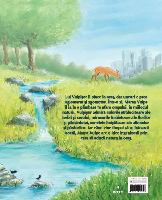 Lui Vulpişor îi place la oraş, dar uneori e prea aglomerat şi zgomotos. Într-o zi, Mama Vulpe îl ia la o plimbare în afara oraşului, în mijlocul naturii. Vulpişor admiră culorile strălucitoare ale ierbii şi cerului, mirosurile îmbietoare ale florilor şi pământului, sunetele liniştitoare ale albinelor şi pârâurilor. Iar când vine timpul să se întoarcă acasă, Mama Vulpe are o idee ingenioasă prin care să aducă natura în oraş.