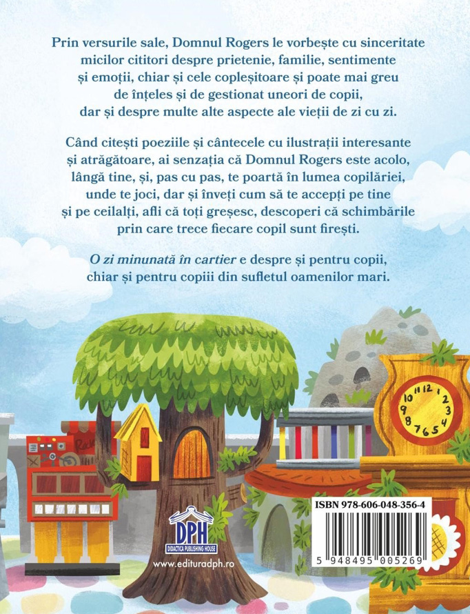 Când citiți poeziile și cântecele cu ilustrații interesante și atrăgătoare, aveți senzația că Domnul Rogers este acolo, lângă voi, și, pas cu pas, vă poartă în lumea copilăriei, unde vă jucați, dar și învățați cum să vă acceptați pe voi și pe ceilalți. Unde aflați că toți greșesc și descoperiți că schimbările prin care trece fiecare copil sunt firești.