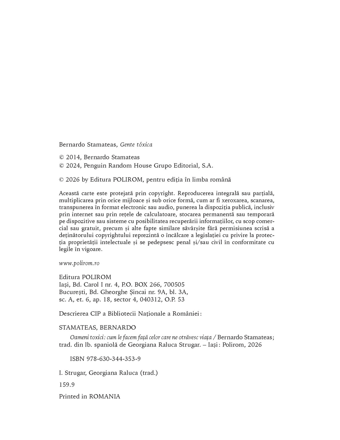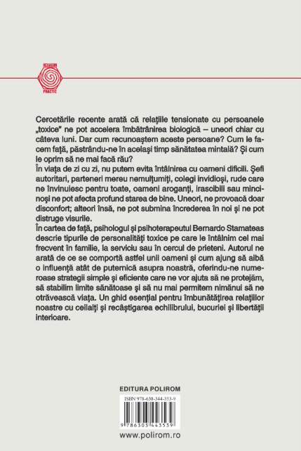 În cartea de față, psihologul și psihoterapeutul Bernardo Stamateas descrie tipurile de personalități toxice pe care le întâlnim cel mai frecvent în familie, la serviciu sau în cercul de prieteni.