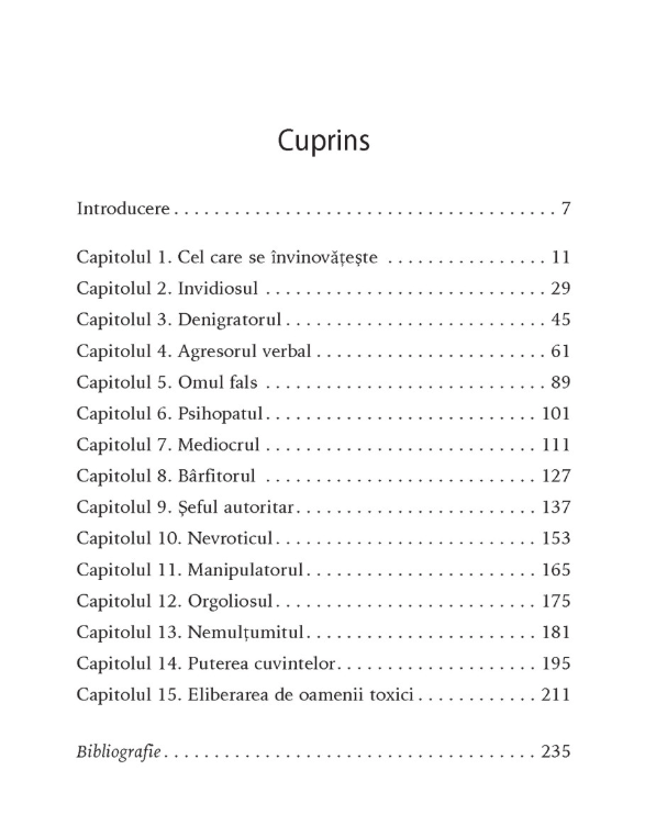 Autorul ne arată de ce se comportă astfel unii oameni și cum ajung să aibă o influență atât de puternică asupra noastră, oferindu-ne numeroase strategii simple și eficiente care ne vor ajuta să ne protejăm, să stabilim limite sănătoase și să nu mai permitem nimănui să ne otrăvească viața.