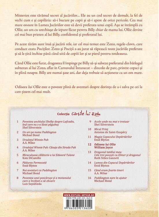 În Odiseea lui Ollie, William Joyce creează întreaga poveste în jurul ideii că și jucăriile au suflet, și ele au emoții, se simt atașate de copii. O jucărie trăiește din interacțiunea cu copilul căruia îi aparține, depinde de atenția pe care acesta i-o dă. Dacă e îndrăgită, jucăria e fericită și oferă ce are mai bun în ea. Dacă e neglijată, jucăria devine ponosită, se degradează. Jucăriile nu au viață pe cont propriu, ci în relație strânsă cu copiii. (...)