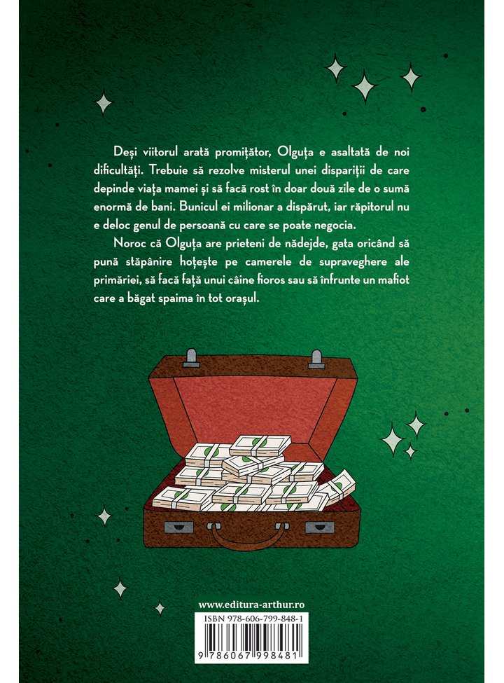 Deși viitorul arată promițător, Olguța e asaltată de noi dificultăți. Trebuie să rezolve misterul unei dispariții de care depinde viața mamei și să facă rost în doar două zile de o sumă enormă de bani. Bunicul ei milionar a dispărut, iar răpitorul nu e deloc genul de persoană cu care se poate negocia.