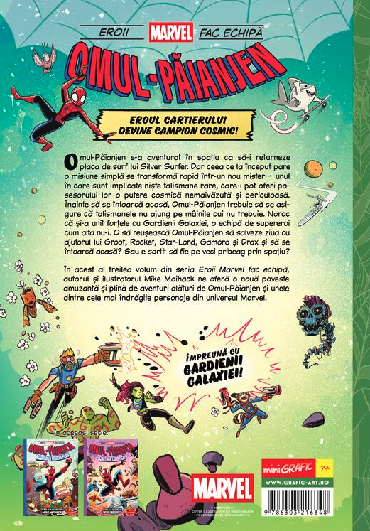 Omul-păianjen s-a aventurat în spațiu ca să-i returneze placa de surf a lui Silver Surfer. Dar ceea ce la început pare o misiune simplă se transformă rapid într-un nou mister – unul în care sunt implicate niște talismane rare, care-i pot oferi posesorului lor o putere cosmică nemaivăzută și periculoasă. Înainte să se întoarcă acasă, Omul-Păianjen trebuie să se asigure că talismanele nu ajung pe mâinile cui nu trebuie. Noroc că și-a unit forțele cu Gardienii Galaxiei, o echipă de supereroi cu alta nu-i. o să reușească Omul-Păianjen să salveze ziua cu ajutorul lui Groot, Rocket, Star-Lord, Gamora și Drax șă să se întoarcă acasă? Sau e sortit să fie pe veci pribeag prin spațiu?