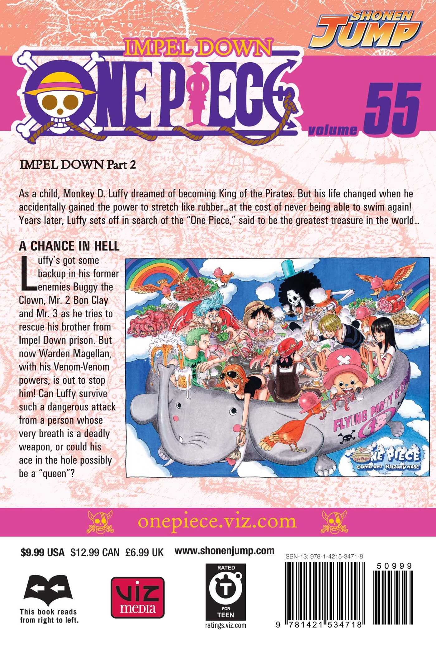 Luffy's got some backup in his former enemies Buggy the Clown, Mr. 2 Bon Clay and Mr. 3 as he tries to rescue his brother from Impel Down prison. But now Warden Magellan, with his Venom-Venom powers, is out to stop him! Can Luffy survive such a dangerous attack from a person whose very breath is a deadly weapon, or could his ace in the hole possibly be a "queen"?