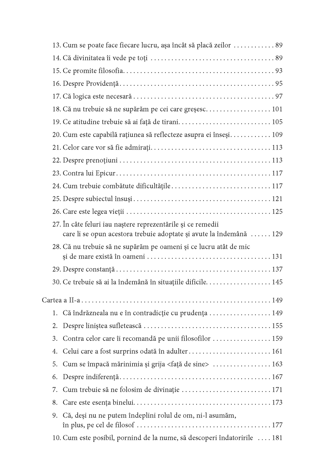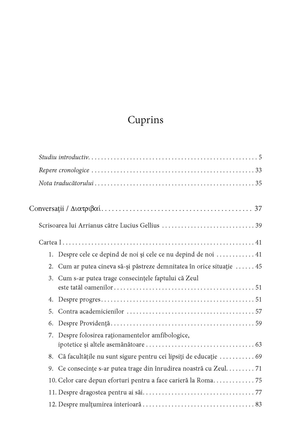 „Epictet, așadar, promovează o filosofie dinamică și fortificatoare, bazată pe cercetarea naturii, pe cunoașterea de sine și pe libertatea asumată, în cadrul determinismului cosmic și social. De aceea, Epictet este un filosof peren și contemporan cu noi.” (Traian Diaconescu)