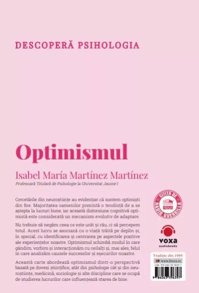 Această carte abordează optimismul dintr-o perspectivă bazată pe dovezi științifice, atât din psihologie cât și din neuroștiințe, medicină, sociologie și alte discipline care se ocupă de studierea lucrurilor care influențează starea de bine.