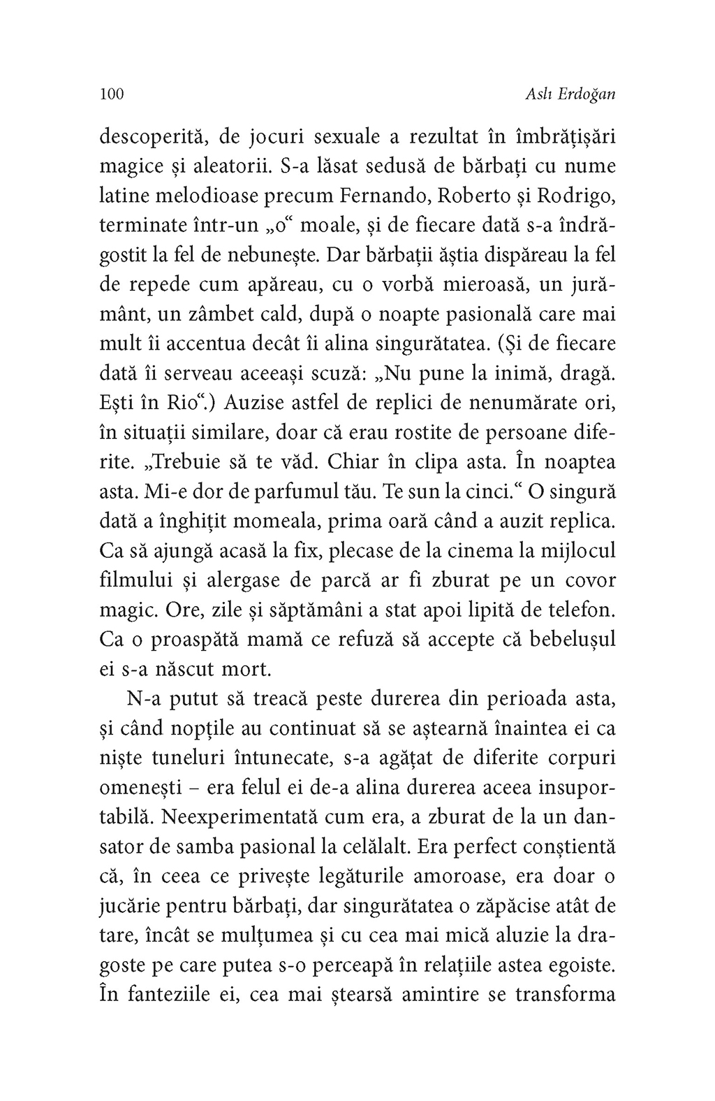 „Mîinile lui Aslı Erdoğan ating sufletul uman. Cuvintele ei sînt uneori poezie amestecată cu esenţa amăruie a vieţii. Citiţi romanul în tihnă, fără grabă, altfel veţi fi copleşiţi de tirul încrucişat de imagini şi metafore.” (Cumhuriyet)