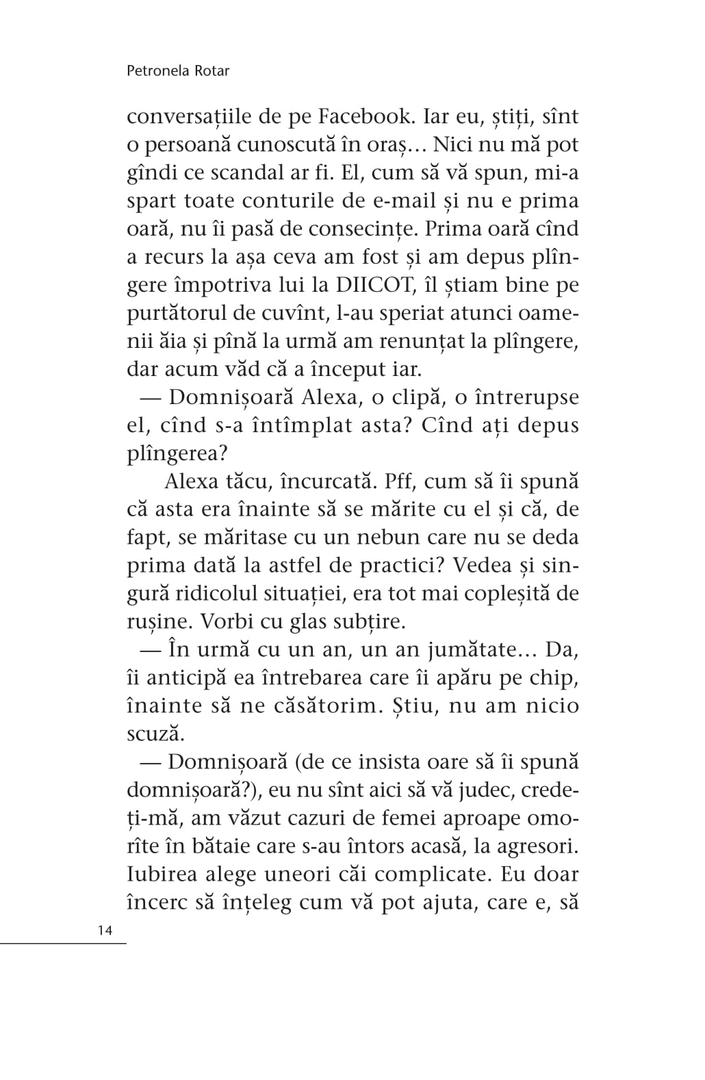 „Șarmul imediat al scrisului Petronelei Rotar vine din faptul ca ea tratează literatura ca pe o problemă personală. Una directă, intensă și presantă, care nu suferă amânare. Ea vine în literatură așa cum vii la confesor, la psiholog: aducând cu tine complicațiile cele mai intime și mai chinuitoare ale vieții tale personale, lucrând direct în materia lor dureroasă pentru a ajunge la vindecare. E deopotrivă o formă de curaj literar – și una de generozitate. O astfel de carte curajoasă și generoasă, vorbind despre abuz și violența și rezistență în fața lor, e și cea de față. Sunt sigur că va însemna ceva important – pentru victimele abuzurilor și cele ale literaturii, deopotrivă." Radu Vancu