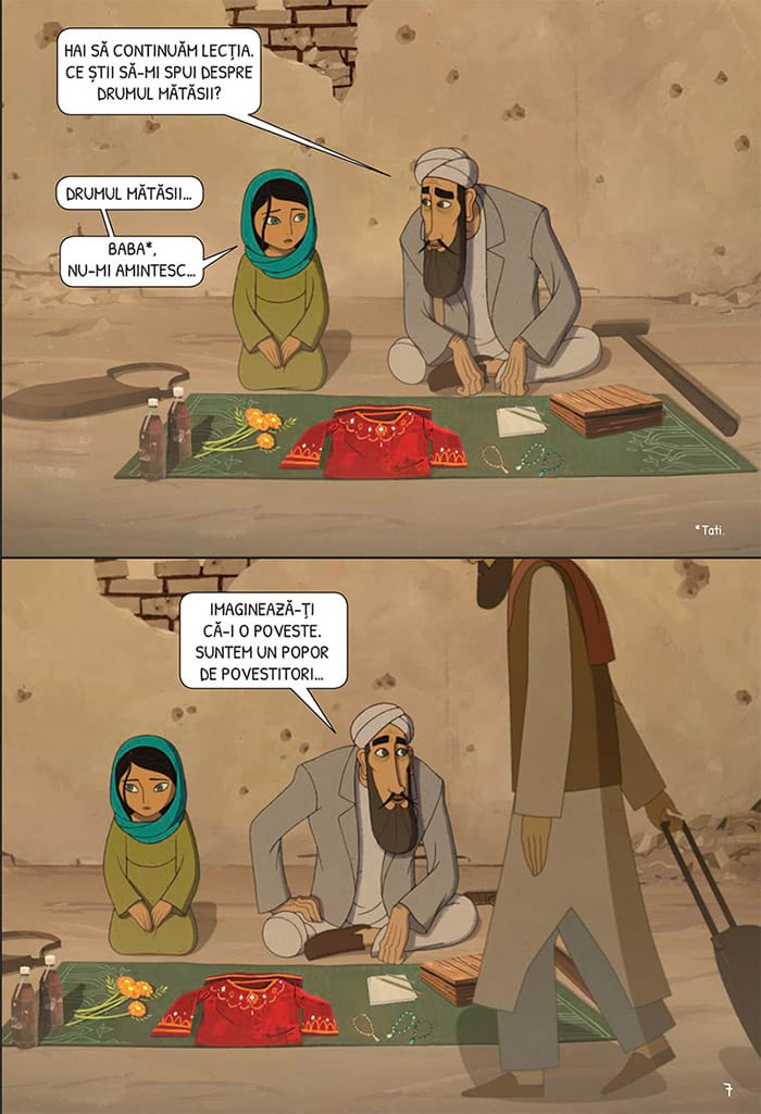 Un roman grafic sensibil și plin de forţă, cu ilustraţii vibrante, care vorbește deschis despre supravieţuire, familie, prietenie, intoleranţă și război. Textul este adaptat de Shelley Tanaka după filmul de animație „The Breadwinner”, regizat de Nora Twomey și inspirat de romanul „The Breadwinner” al scriitoarei Deborah Ellis.