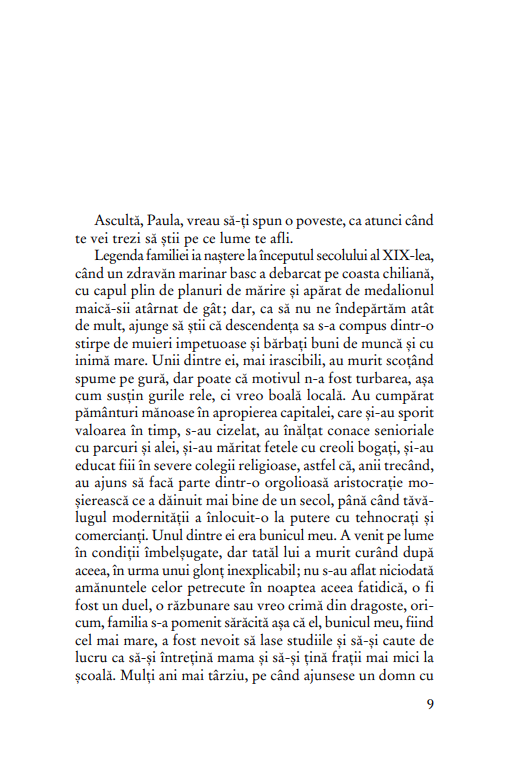 Veghindu-şi fiica, Allende a pus pe hârtie tot ceea ce ar fi vrut să-i spuna Paulei când aceasta nu o mai putea asculta.